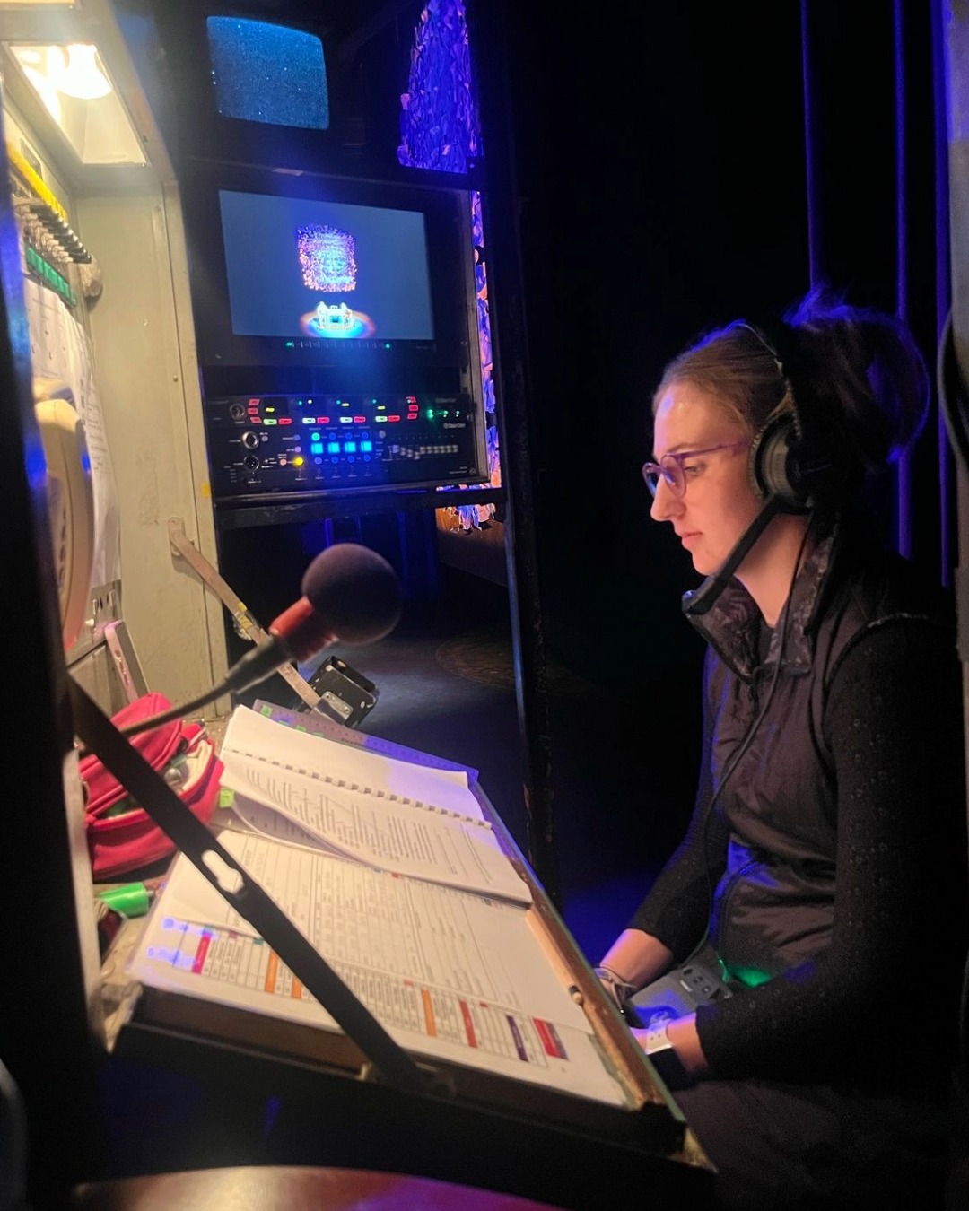 For a stage manager, this means coordinating teams across departments, maintaining safety backstage, managing rehearsal schedules, and ultimately calling the show. Once the production opens, every lighting cue, sound cue, and stage movement flows through a headset system where the stage manager communicates in real time with the entire crew.